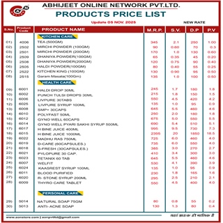 Product Price List 2025